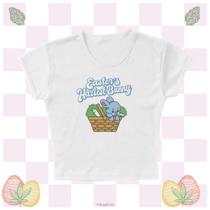 Celebrate the ultimate high holiday in style with our "Easter's Haziest Bunny" women’s baby tee—because Easter and 420 falling on the same day is a sign from the universe. Made from soft, form-fitting fabric for the perfect fit, this tee is as comfy as it is cheeky. Whether you're hunting for eggs or just rolling up, this design lets everyone know you're the real MVP of the holiday. Hop, toke, and repeat.