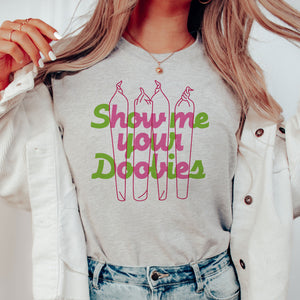 Make sure your style is fully lit in this Show Me Your Doobies Shirt! Featuring hilarious weed humor, this shirt is sure to keep you and your friends giggling all night long! Stylishly sesh-y!