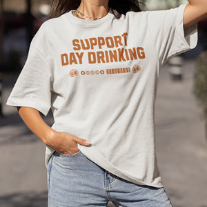 Introducing our "Support Day Drinking" graphic tee, the ultimate statement piece for those who appreciate drinking any hour of day. Crafted from soft and breathable cotton fabric, this oversized tee is as comfortable as it is stylish, making it the perfect addition to your casual wardrobe.