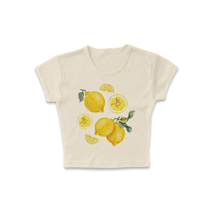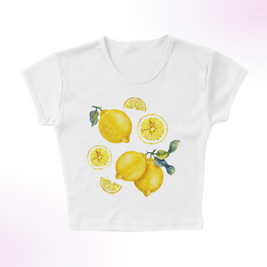Brighten up your wardrobe with our hand-illustrated "Lemon Chart" Graphic Baby Tee. This charming, dainty tee features a detailed, hand-drawn chart of lemons, perfect for adding a fresh, zesty touch to your casual look. Made from soft, breathable fabric, it's perfect for any occasion, such as brunch, happy hour, lounging around and beach days.