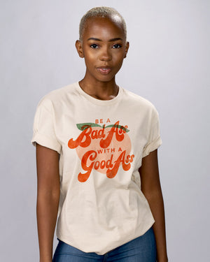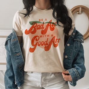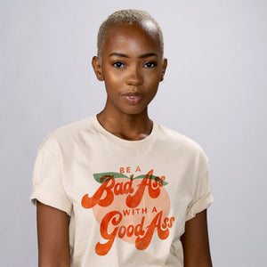 Say "Yes!" to becoming a Bad Ass With A Good Ass! This sassy and trendy style is sure to make you stand out from the crowd. Who says you can't be a trend setter with a badass attitude? Grab this shirt and proudly express yourself!
