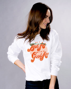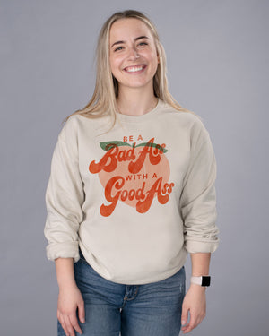 This Bad Ass With A Good Ass Sweatshirt will make sure you always look fly and stylish. It's the perfect way to show off your bold personality, while still looking classy and fashionable. Make a statement with this one-of-a-kind piece and let everyone know you're a bad ass with a good ass!