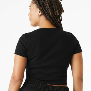 ♥ Our women’s micro rib baby tee falls just at the hips and features a fitted fit.