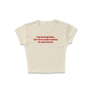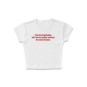 Perfect for the hardworking souls who find solace in their routines, this trendy baby tee is a stylish declaration of self-awareness and contentment. Crafted from premium fabric for maximum comfort, it's your go-to attire for unwinding after a long day at work.