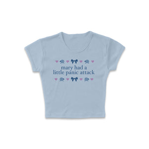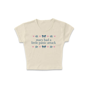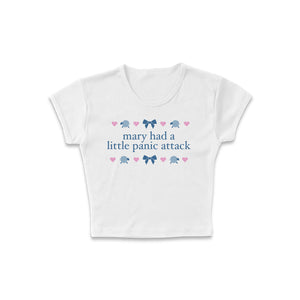 Add a touch of humor to your wardrobe with our "Mary Had a Little Panic Attack" Graphic Baby Tee. This playful twist on the classic nursery rhyme is perfect for anyone who can relate to modern life's stresses. Made from soft, comfortable fabric, it’s ideal for everyday wear and sure to get a laugh from friends.