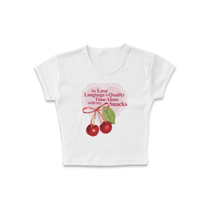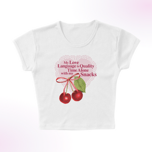 Express your love language with this cozy graphic tee! Perfect for those who cherish quality time alone with their snacks.