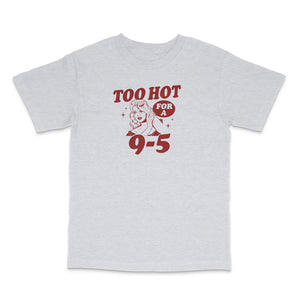 Introducing our 'Too Hot To Work' graphic t-shirt, the ultimate blend of comfort and sass! This loose-fitting tee is made from high-quality cotton that feels as good as it looks. Featuring a bold, eye-catching slogan and design, it's perfect for those who know they're too hot to be bothered with mundane tasks. Whether you're lounging at home or meeting up with friends, this shirt is a stylish statement piece that showcases your playful attitude. Let the world know you're too hot to work with this trendy tee!