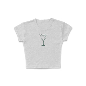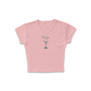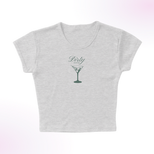 Elevate your casual style with this trendy graphic baby tee, inspired by the timeless allure of the dirty martini. Crafted from premium cotton/polyester fabric, this tee offers a comfortable fit and lasting durability, perfect for all-day wear.