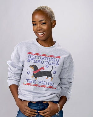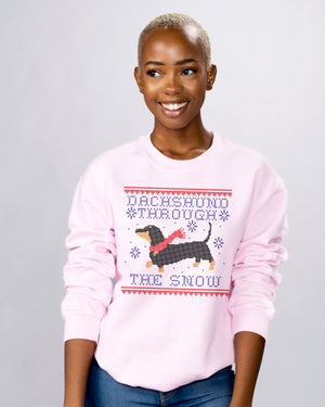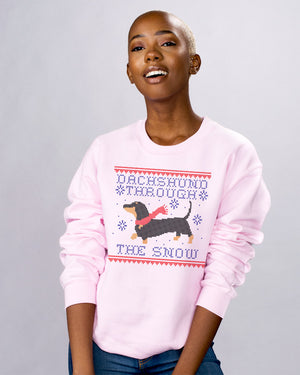 Look dapper and warm in this hilarious Dachshund Through The Snow Crewneck Sweatshirt! This funny Christmas number features a Weiner dog prancing its way through the snowflakes, creating a cozy look for all your wintertime outings. So slip into something a little more comfy, and get ready for a season of dog-gone awesome style!