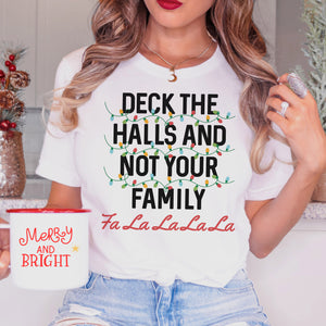 This festive Deck Halls Not Family Shirt is the perfect way to show off your witty holiday cheer! Get ready to set the tone for a holly-jolly Christmas with a shirt that humorously hints at the chaos that lies ahead. Enjoy the holiday season with a multitude of laughs!