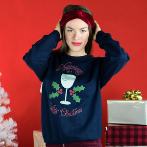 Set the holiday mood with this “Dreaming of a White Christmas” Sweatshirt! Perfect for wine-lovers and Christmas fanatics alike, this festive pullover features a white-wine inspired print that’s sure to bring some humorous cheer to your holiday festivities. Yule-sip to that!