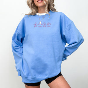 Add a sweet touch to your wardrobe with our trendy sweatshirt featuring adorable pink gingerbread men outlines embroidered across the front. Made from ultra-soft fabric, it's perfect for staying cozy during the holiday season. The playful design brings a festive flair to your everyday style. Get ready to spread cheer while staying comfy and cute.