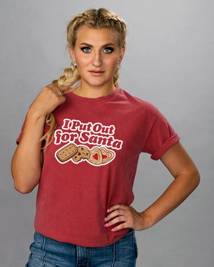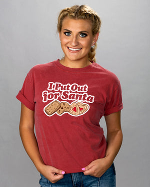 This I Put Out For Santa Shirt is the perfect way to make a funny statement at your next holiday party! Get festive while still showing off your unique sense of humor with this Christmas-inspired design. 'Tis the season to be sassy! ;)