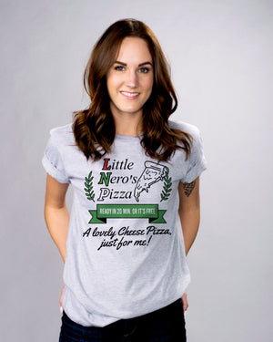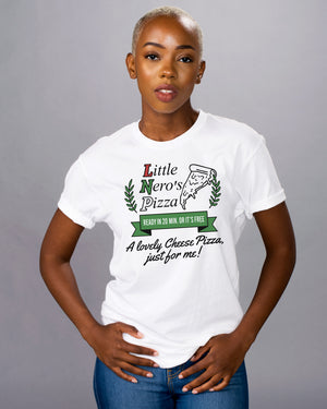 Embrace the holiday spirit with our "Little Nero's Pizza" Christmas graphic tee inspired by the iconic Home Alone movie! Crafted from soft, breathable cotton, this tee will keep you comfortable all season long. Featuring a festive design and the classic pizza logo, it's perfect for movie nights or holiday gatherings. Spread the joy and nostalgia with this cozy tee that captures the essence of the season. Get ready to make memories and relive the magic of Home Alone in style!