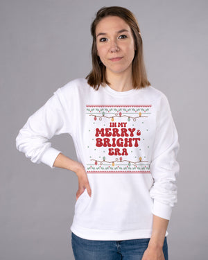 Light up the holiday season with this fashionable Merry and Bright Era Sweatshirt. This trendy Christmas piece is perfect for any jolly occasion, featuring a classic cut and festive design guaranteed to make you look merry and bright! 🎅🏼