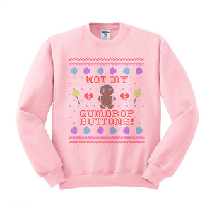 Gingy the gingerbread man’s heart breaks as he pleads to keep his precious gumdrop buttons! This Shrek/Christmas mashup makes for the perfect shirt to wear to that holiday cookie baking party this year! The “ugly Christmas sweater” look and colorful pieces of candy will win you the gold medal in your annual ugly sweater contest, too!