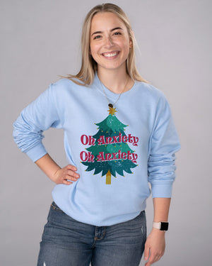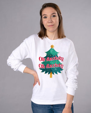 Tired of feeling anxious every other minute? Put on this funny Oh Anxiety crewneck sweatshirt and feel all the holiday joy! It's made of comfy fabric and features cheeky typography that'll make you smile every time. Get it and wave goodbye to your Christmas blues!