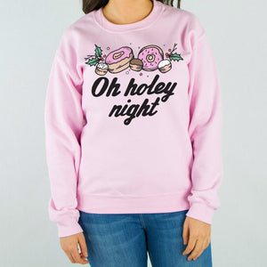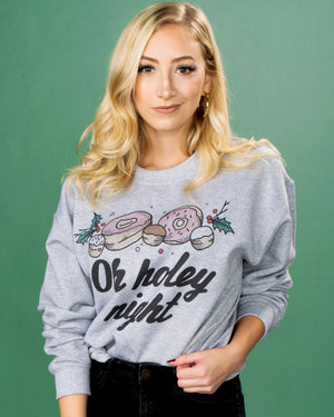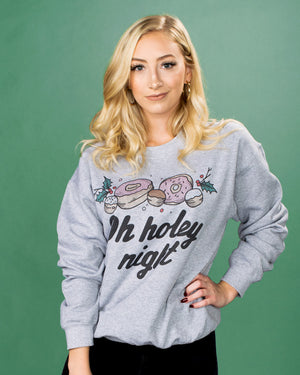 Deck the holiday halls with treats (and donuts!) in this “Oh Holey Night” crewneck sweatshirt! Cozy and stylish, it’s perfect for all your (delicious) Christmas festivities!