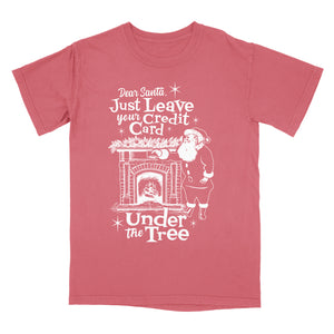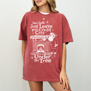 Get ready to sleigh this season in style with our graphic tee that says, “Dear Santa, Just Leave Your Credit Card Under The Tree." The ultimate cozy-meets-sassy holiday essential. Perfect for shopping trips, holiday parties, or lounging by the fire, this soft and warm sweatshirt adds a dash of humor to your Christmas wardrobe. Whether you’re on the naughty or nice list, this one’s a must-have for festive fun.