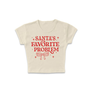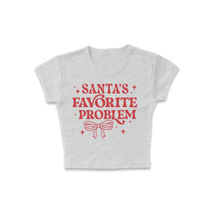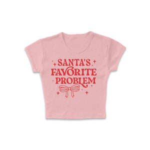 Be the talk of the holiday season with our “Santa’s Favorite Problem” women’s micro rib baby tee - a cheeky and stylish nod to your fun, festive side. Designed for comfort and confidence, this fitted micro rib tee adds just the right amount of sass to your Christmas wardrobe. Whether you’re out celebrating, wrapping gifts, or cozying up with hot cocoa, this shirt is perfect for spreading laughs and holiday cheer.