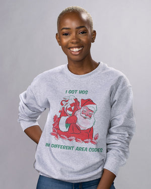 Rock Santa's Got Hos Sweatshirt and spread Christmas cheer with unexpected puns! Have a holly jolly time as you show off your wit with this festive sweatshirt.