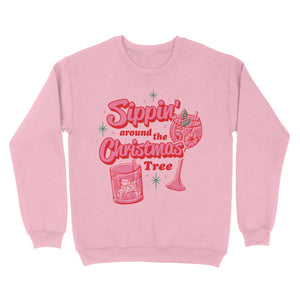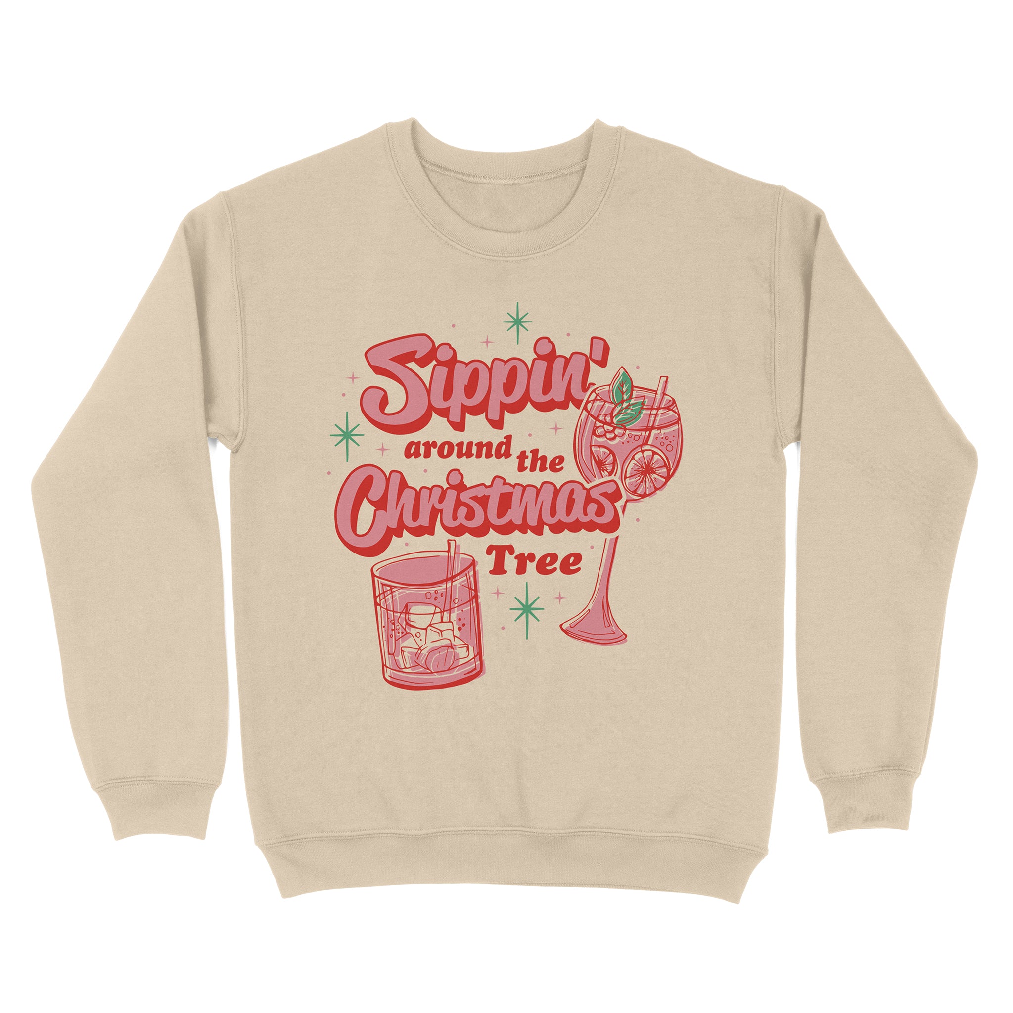 Get ready to sip and be merry with our 'Sippin’ Around the Christmas Tree' graphic crewneck sweatshirt.  This playful twist on a holiday classic is perfect for those who love festive cheer with a side of cozy comfort. Made from a soft cotton blend fabric, it keeps you warm while spreading Christmas joy. Perfect for holiday parties, wine nights, or lounging by the tree in true merry style.