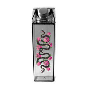 Stay hydrated with this head-turning water bottle! Our Floral Snake Milk Carton features a unique floral and snake design. Sip your drinks in style while getting people to do a double-take! (How 'slither'ing cool!)