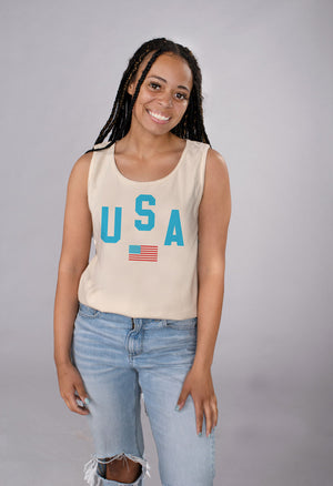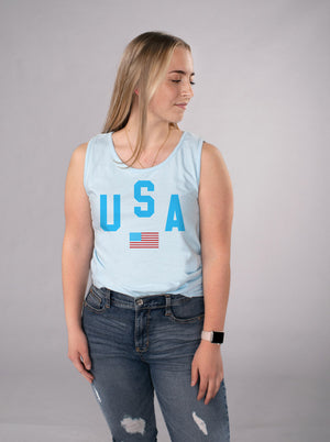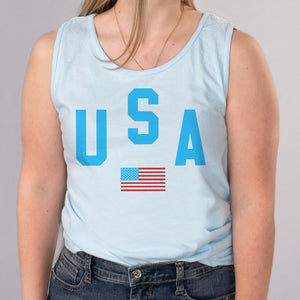 Look fly and patriotic in this USA Flag Unisex Tank Top! Perfect for your 4th of July barbeque, you'll be ready to show off your red, white, and blue with this classic tank. Sparkle with stars and stripes!