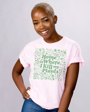 Show off your green thumb (or lack thereof) in style with this comfy Kill My Plants Shirt! The perfect blend of fashion and humor, this shirt is the perfect way to make a statement without saying a word. Who needs to keep their plants alive when you can just slay them in style?