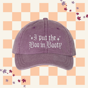Add a playful touch to your Halloween outfit with this fun and festive embroidered dad hat. Featuring the cheeky phrase, "I Put the Boo in Booty," this hat is perfect for celebrating the spooky season with style. Made from high-quality fabric with an adjustable strap, it ensures a comfortable fit for all your ghostly gatherings.