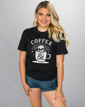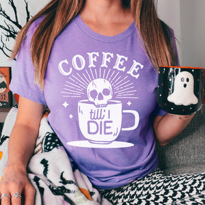 This Coffee Til I Die shirt is a funny way to show your extreme love of coffee. With its coffee-obsessed skull graphic, it's the perfect choice to start your day with a caffeine buzz. Don't let anyone tell you to give it up - your coffee love is eternal!