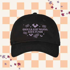 Celebrate Halloween with a touch of humor and style in this playful embroidered dad hat. Featuring the witty phrase, "Ghouls Just Wanna Have Funds," this hat is perfect for adding a fun twist to your spooky season wardrobe. Crafted from high-quality fabric with an adjustable strap for a comfortable fit, it's ideal for all your festive outings.