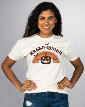 This spooktacular Hallo-Queer Shirt is a frightful delight! Not only will you look wicked cool, but you'll be able show off your queer pride in style! Trick or treat yo'self to this one-of-a-kind design. Don't be scared, just get the shirt!