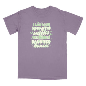 The perfect shirt for those who love a touch of romance with their spookiness. Crafted from ultra-soft cotton, this tee ensures maximum comfort and style for all your Halloween adventures. The design features a stylish spooky graphic that captures the thrill of haunted house explorations with a romantic twist. Ideal for Halloween parties, haunted house tours, or just getting into the festive spirit.