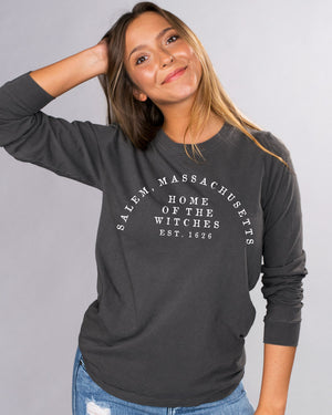 Bewitch your style with Home Of The Witches Long Sleeve! Keep it spooky this season with this Salem Massachusetts inspired shirt, the perfect way to conjure up a fashionable look. Be sure to cast a spell on all of your friends with this one-of-a-kind design!