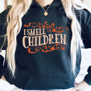 Don't be afraid to embrace your inner Sanderson Sister and show the world your Hocus Pocus spirit with this I Smell Children hoodie! Whether you're layering up for a night of trick-or-treating or just adding a touch of Halloween flair to your everyday look, this spooky-cute hoodie is the perfect pick. Slay the style game like a Sanderson!