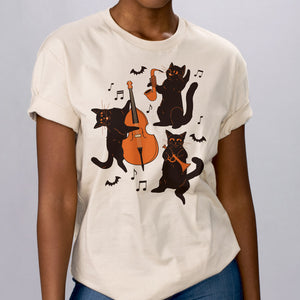 Be the sassiest one at the Halloween party with this Musical Halloween Cats Shirt! Featuring cute cats playing ghoulish tunes, this shirt is sure to make you purrfectly on-trend! So why not rock out and boogie to the beat - your look has just been meowed!