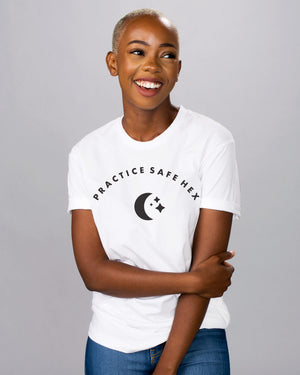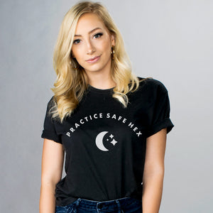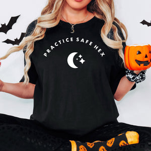 This witchy Halloween practice safe hex shirt is perfect for spell casting, incantations, and any other magical mischief. So don't get caught out in the night without your protective charm - practice safe hex!