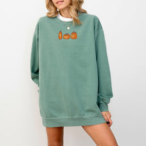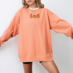 Enjoy the cozy season with our Pumpkin Line Embroidered Crewneck Sweatshirt. Featuring trendy pumpkin embroidery, this sweatshirt combines festive flair with everyday comfort. Made from ultra-soft, high-quality fabric, it offers a relaxed fit that's perfect for layering or wearing on its own. The ribbed cuffs and hem ensure a snug fit, making it an ideal choice for chilly autumn days.