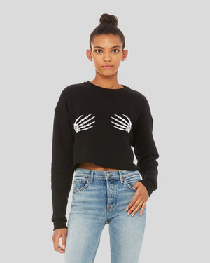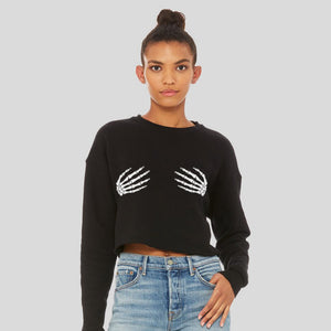 Set the tone that you're a bad b!tch in this trendy Skeleton Hands Crop Sweatshirt. This premium cropped sweatshirt features a classic cropped cut with a true to size women's fit and an exceptionally soft feel.