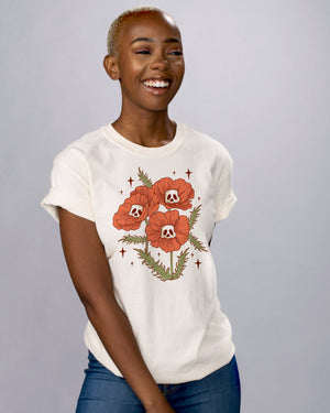 Featuring spooky flowers and nature babe vibes, this shirt will have you looking the part whether you're hitting the town or hanging with friends. Get your spooky on in style!