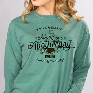This Three Witches Apothecary Long Sleeve Tee is the perfect way to add a spell of style to your wardrobe! It's the perfect spooky-cute witchy Halloween statement. You'll be ready to put a hex on the mundane, and add some flare to your outfit!