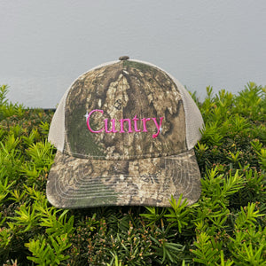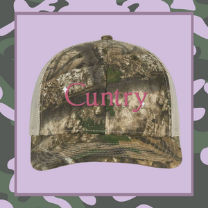Saddle up, darling—this ain't your average camo trucker hat. Our 'Cuntry' embroidered trucker hat is for the bold and the unfiltered. Featuring a classic camo print with unapologetic embroidery, this hat is the perfect mix of rugged and rebellious. Whether you're two-stepping at the bar or just out here breaking hearts, wear it loud and proud. Yeehaw, b*tches.