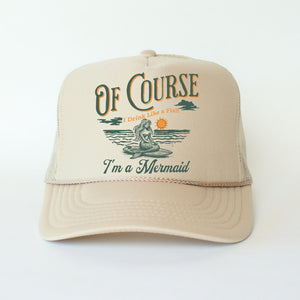 Make a splash with our trendy trucker hat featuring the slogan, "Of Course I Drink Like a Fish, I'm a Mermaid." Perfect for adding a touch of humor to your beachwear, this hat features a breathable mesh back and an adjustable snap for the perfect fit. Dive into style and fun!