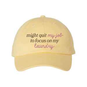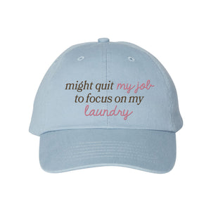 Make a statement with our "Quit My Job" embroidered dad hat. Equal parts funny and relatable, this hat is perfect for anyone juggling life’s never-ending to-do list. Comfy and casual, it’s the ultimate accessory for tackling (or avoiding) the laundry pile.