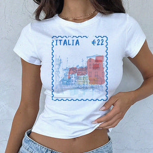 Send style straight from the source with our 'Italia Stamp' women’s baby tee — a nod to vintage postcards, dreamy destinations, and all things Italian. This soft, fitted tee brings effortless European-girl energy to your wardrobe, whether you're booking a flight or just manifesting one. Chic, timeless, and ready for la dolce vita.