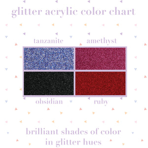♥ Crafted from lightweight, scratch resistant acrylic material with brilliant shades of color and glitter hues.