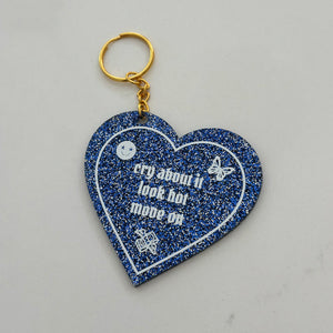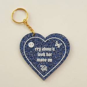 This trendy custom cut keychain is your new go-to for keeping it cute while handling life’s ups and downs. It features the sassy, empowering message, "cry about it, look hot, move on" ~ making this keychain the perfect reminder to stay fabulous no matter what. Durable and stylish, it's made to handle both your keys and your mood like a boss.
