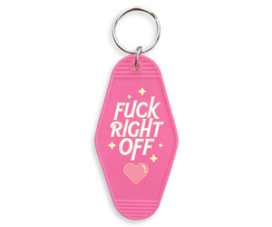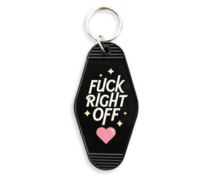 Are you in need of an ~*expletive*~ expression of your feelings? Then say it with this Fuck Right Off Motel Keychain! It's a perfect gift for your friends and family, plus it's stylish and retro. They won't miss this message!