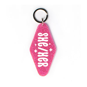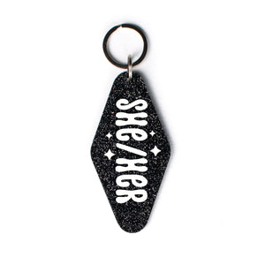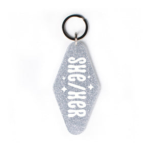 Add some sparkle to your keys with this fun and playful She/Her Glitter Keychain! Featuring stylish 'she/her' pronouns, this keychain will keep your keys safe and secure, plus add a bit of glittery fun to your life. Come show off your personality with sass and style - this keychain is the perfect way to do it!